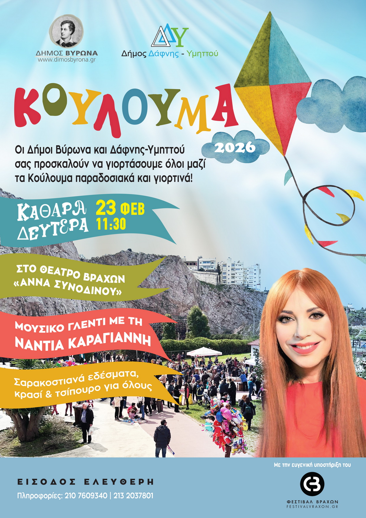 Με παραδοσιακή μουσική, σαρακοστιανά εδέσματα και γιορτινή διάθεση ο Δήμος Βύρωνα και ο Δήμος Δάφνης-Υμηττού, υποδέχονται την Καθαρά Δευτέρα προσκαλώντας όλους τους πολίτες σε μια ανοιχτή, χαρούμενη γιορτή στον χώρο των θεάτρων βράχων «Άννα Συνοδινού» και «Μελίνα Μερκούρη».